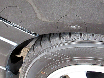 代車を貸してもらいましたが、実家に置いて2号車で帰宅。 この写真だとヴィッツが異常に大きく見えますね(笑) そして、およそ2週間後、修理完了した1号車を取りに行きました。 作業を進めていくうちに新たな錆があったということで、多少追加もありましたが無事に車検も取得! なんとか公道復帰できました。 作業前と作業後の写真、同じ場所ではないですが修復されている様子がわかると思います。 今回は車検取得に必要ないため手つかずの所もありますが、そこもいずれ修理対応したいと思います。 「塩カルで錆びた車体のレストアはできない」と言われましたが、今回の修理でしばらくは延命できそうです。 費用も予想より低く済みましたし、本当に良かった(^^)
