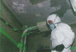 蒸気機関車・船・発電所・製鉄所・建物の暖房 ●排気口の断熱材 家庭用の風呂の煙突・ディーゼル船の煙突 ●建材 天井・波形スレート・床タイル・コロニアル瓦・外壁の断熱材・鉄骨の吹きつけ ●その他 水道管・ブレーキの耐摩擦材 造船所では 造船所では、断熱材やボードとして船内に取りつけられるほか、作業の際に、溶接・溶断の火よけとしても使われていました。危険性を知らされなかった作業者やその周りで作業をしていた人たちは、かなりのアスベストを吸い込んでいたのです。