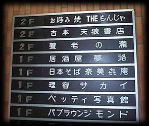 サンゴ行きつけの古本屋。 すでにツブれて美容室になっていたが、ビルの案内板にはまだ残っていた。 やはり「呪い」なのだろうか? 2階の床は、確かに滑りやすかった。
