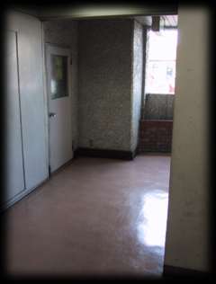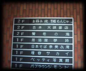 階段あがった2階の所。確かにツルツルした床で、滑りやすい。ちなみに左側のドアがお好み焼き「THEもんじゃ」だ。ちなみに「何屋」なんだかよく分からないネーミングだな。どーでもいいが。
