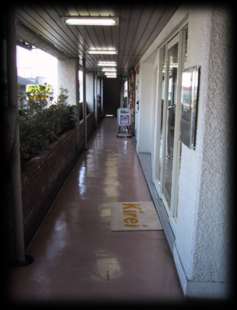 これが廊下を撮影したもの。ご覧の通りテカッた滑りやすそうな廊下。