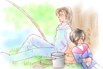 Cそれでもたまには 様子を見に 今日は 確か川遊びの日だっけ …おや 王子様はお昼寝中 (どうやら今日はボーズみたいね) |