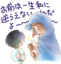 | 「それが 以前 アトワイトさんが 言ってた 親子関係を利用した 支配と被支配≠チてやつだろ オレ流に 言うと 悪い魔法使い・ヒューゴの 呪い≠セな」 |