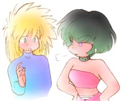 | 「てことは 悪い魔法使いを 倒せば 呪いはとけて めでたし めでたしって わけね よ〜し! この ルーティ様が やったろうじゃない!!」 「でも ルーティ… 倒すって」 「もちろん! あたしが あの バカ親父を ぶっ殺すってことよ」 |
