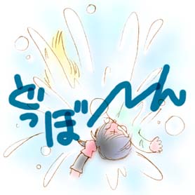 「だ〜〜〜っ だめですって 坊ちゃん!! ←落ちた先が そんな風に ラッキーな事なんて ほとんど 無いに等しいんだから! たいがいは こんなもんです↓ だからさ 考え直そうよ〜!! ねっ ね〜っ」 |