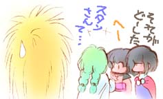 | 「さすがスタンさん! 人間が 出来てらっしゃる んですね」 「妹思いなんだな 感心 感心」 「え? あ いや」 |