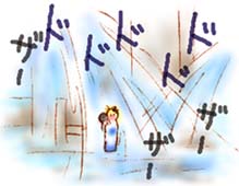 | (1コマ目 上から水が落ちるの 書いてしまったので なんか変… いいや ここはその上の階か 天井が高いってことで…) | |