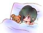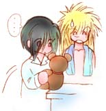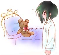 | クマはベッドの友! こうやって一緒に寝ないと …汚れるぞ 汚れたら洗えばすむことだろ オレが洗ってやるよ さー オレが寝てる間 リオンが悪い夢を見ないよう 頼むぞ! クマさん | |